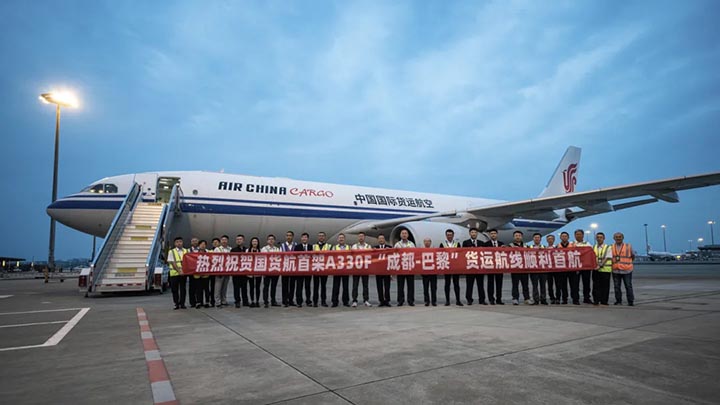 6月2日,航班CA1003从成都双流国际机场起飞,历经10个小时,最终抵达巴黎戴高乐机场。该航班顺利抵达,标志着由中国国际货运航空有限公司开行的“成都—巴黎”货运航线正式开通。本次航班由国货航最新完成改装并正式投入商业运营的空客A330(B-6090)全货机执飞,这也是国货航空客系列货机的首次亮相。