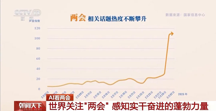 今年两会,央视总台报道团队将引入一位特别的小“助手”——AI智能体。在3日举行的全国政协十四届三次会议新闻发布会上,通过连接AI技术,我们洞察到世界对中国两会的高度关注,更感受到了中国实干奋进的蓬勃力量。