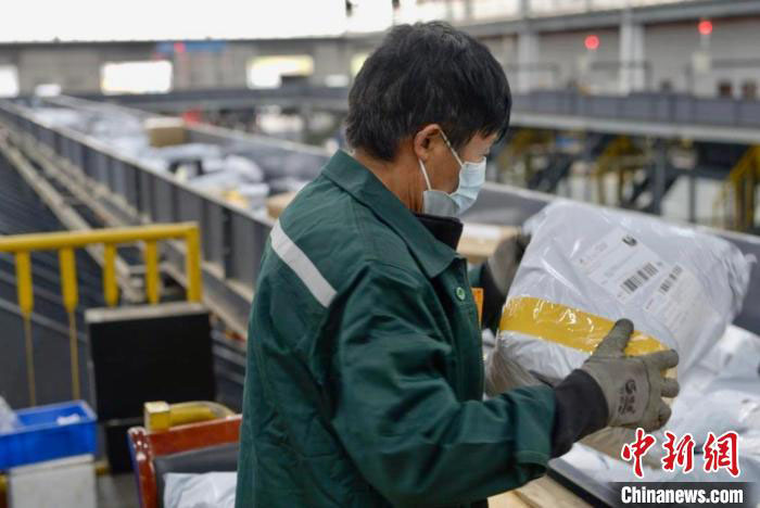 义乌某快递点的工作人员分拣电商包裹。(资料图)董易鑫 摄